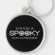 Simple and modern Spooky Typography Halloween Premium Keychain in black and white featuring a cool text design with two whimsical ghosts peeking through the word "Spooky." This fun Halloween keychain lets you easily keep track of your keys and show the world a bit of Halloween flair! Easy to customise, add your own spooky text. Click on the "Customise It" button to move the design element, change the fonts or text colours, and add/remove additional text.