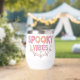 This fun and festive Halloween design features the phrase "Spooky Vibes" in a playful, dripping font that gives the text a gooey, eerie effect. The words are filled with soft, pastel shades of pink, orange, purple, and peach, adding a lighthearted and whimsical twist to the spooky theme. Beneath the text, a simple spider web illustration in a soft brown colour adds a classic Halloween touch, tying the design together. The combination of the pastel colours and the spooky elements creates a unique contrast that’s both cute and a little bit creepy, making it perfect for Halloween