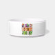 This is a heavy, durable bowl decorated with Tibbies of many colors, the perfect size for hungry/thirsty Tibs. The design is interesting and printing clear.