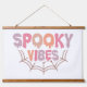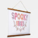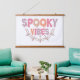 This fun and festive Halloween design features the phrase "Spooky Vibes" in a playful, dripping font that gives the text a gooey, eerie effect. The words are filled with soft, pastel shades of pink, orange, purple, and peach, adding a lighthearted and whimsical twist to the spooky theme. Beneath the text, a simple spider web illustration in a soft brown colour adds a classic Halloween touch, tying the design together. The combination of the pastel colours and the spooky elements creates a unique contrast that’s both cute and a little bit creepy, making it perfect for Halloween