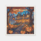 This napkins features a spooky mansion in the forest with illuminated windows surrounded by lots of pumpkins. Perfect for your Halloween Party! Custom text.