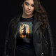 The design exudes an irresistible combination of spookiness and coolness. The dynamic witch silhouette, the striking orange moon, and the celestial stars promise to set a captivating and eerie tone for your Halloween wardrobe.
