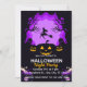 Invite your guests to a night of spooky fun with our enchanting Halloween Night Party Invitation! This captivating design sets the perfect eerie tone, featuring a striking silhouette of a witch flying across a layered, deep purple night sky. Framed by gnarled, spooky trees and glowing jack-o'-lanterns, this invitation captures the magical essence of Halloween. Bubbling cauldrons and graveyard tombstones complete the haunted scene. Easily personalise all the essential details for your spooky celebration, including the date, time, location, and RSVP information. Ideal for an adult costume party, a teen Halloween bash, or any haunted gathering.