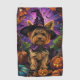Spooky Yorkipoo Dog Halloween Witch And Pumpkin Golf Towel