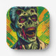 Halloween party paper plates. Scary decaying zombie done in a pop art comic book style ai art. Cool for Halloween or anyone who loves zombies..
