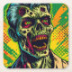 Halloween party coaster. Scary decaying zombie done in a pop art comic book style ai art. Cool for Halloween or anyone who loves zombies..
