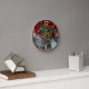 Spools of Christmas Ribbon Holiday Red and Gold Round Clock