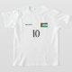 The t-shirt feels and looks great quality, a good thick cotton. It will be a little big for my son, but that means he will be able to wear it and not out grow it too soon. The print was as described on the order when personalised. True size, shape and colour T-shirt- thanks.