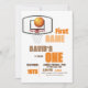 A themed sport invitation to a themed basketball party for a little future athlete. Stylish modern card with a font in orange- brown colour and an integral attribute of the party, a bright orange ball and ring. Kids birthdays are special, and this invite can help it make a memorable birthday party.