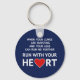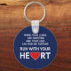 The inspirational text on the front of this keychain is in white with a red heart, and there is a dark navy background. It's for any athlete, sportsman or woman, marathon runner, cross country competitor: training indoors on the treadmill, jogging along country lanes or city roads. On the back you can fully personalise it by uploading a favourite photo, and adding some short text eg the name of your sports club.