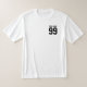 Sport-tek competitor custom jersey number sports T-Shirt . Personalised moist wicking tee for athletic activities. Keep yourself dry as much as possible with lightweight tech clothing. Create your own apparel for summer training, football, basketball, baseball, soccer, lacross, volleyball, running, racket sports, teams, fans and more. Great for players and coach. Bold text template for name and number. Double sided print. Roomy active wear for men. Available in white, light blue and grey.