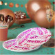Fun netball themed party paper plates. Netball word art design party supplies.
