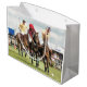 An art design of polo ponies and players during a chukka/chukker of a polo match.