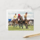 An art design of polo ponies and players during a chukka/chukker of a polo match.