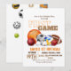 A themed sport invitation to a themed First Game party for a little future athlete. Stylish modern card with a font in orange- brown colour and an integral attribute of the party, a bright orange ball and ring. Kids birthdays are special, and this invite can help it make a memorable birthday party.