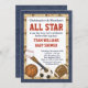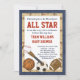 Invite guests to a Baby Shower with this red, white and blue All Star Sports Baby Shower Invitation. Features a basketball, football, baseball and bat and soccer ball and can be customised with your baby shower information. Some elements by www.nitwitcollections.com License #41088
