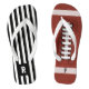 Inspired by the great game of American Football, here's an odd pair of flip flops where the left flip shows the Referee stripes and the right flop is the pigskin football. Both can have a different initial or the same. A fun pair to wear whilst watching the game. Suitable for Dads that like cool feet and hot football games.