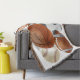 A quality printed throw has its advantages. This is a much finer weave throw than its loopier cousins, and though lighter, it is worth the investment for custom room accessorizing. The back is much prettier than the typical brown, and the fringe on the long sides very vivid, the selvage nicely done. Before photographing, I washed the throw in cold water, delicate, with a thicker woven throw the same size. On tumble dry low, this throw was dry in half the time as the other. This is a very practical quality if you use throws for furniture covers or to wrap up in frequently. The sleekness of the fabric makes it a great layer for accenting or protecting without the feeling of sitting on too much stuff. Perfect for napping or when you feel a light chill coming on. The color printing is beautiful and on this fabric, matched the design and color of my Photoshop image. This is an advantage for blending room fabrics and colors. The fringe on the short sides prints the colors from the design image and therefore varies from the side fringe. I streaked a white fractal line through the plaid pattern to give the illusion of weaving. This printed as crisp as an illusory thread, and put some white in the short side fringe, showing another advantage of print vs loomed- for artistic purposes, line lines, detail, and color integrity can be planned and preserved. My loomed throws have color limitations and more of a needlepoint texture. Print throws reproduce an exact image. The throw felt a little stiff straight out of the package, but this went away in the first delicate wash. Of course I searched the wash water for ink or bleeding and there was none.