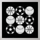 Sports balls trendy black and white poster