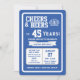 Sports Bar Birthday Cheers and Beers to 45 Years Invitation