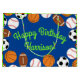 This cute design with soccer balls, footballs, basketballs and baseballs is great for a sports theme kids birthday party! Perfect for a child born in the summer or spring! Great for boys and girls that love sports!