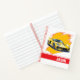 This notebook is shown in a regular shape with college rule pages with a sports car photo art print.