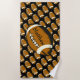 This soft, cuddly sports beach towel features brown and white footballs flying through the air. Easily personalise the text for a special sports fan or remove entirely. Customise the black background to the colour of your choice.