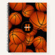 This fun basketball themed spiral notebook features a randomly arranged, varied size basketballs on a black background - selective shading gives the basketballs a unique 3D appearance - customise with the athlete's name and monogram - by katz_d_zynes