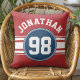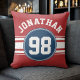 Sports Jersey Navy Blue & Red Stripes Name Number Cushion