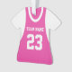 Pink and white sports team jersey with team name and number.