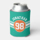 Sports Jersey Stripes Emerald & Orange Name Number Can Cooler