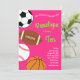 These adorable mod colourful cute sports birthday party invitations are perfect for a sports theme birthday celebration! Customise the text to make them your own. The modern look and feel is the perfect way to celebrate your little one that loves to play football, soccer, basketball and football on their birthday! Perfect in pink for girls!