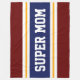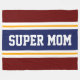 This sporty, fun design features bold SUPER MOM text inside a highlighted wide navy blue stripe with double white and yellow orange racing stripes against deep red outer stripes. The text in this design can be personalised.