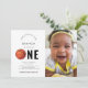 Celebrate your little one's first birthday with this modern, stylish invitation, featuring basketball, photo & custom text. Easily add your own details by clicking on the "personalise" option.