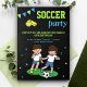 Invite your guests with this cool birthday party invitation featuring two cute boys playing soccer against a chalkboard background. Simply add your event details on this easy-to-use template to make it a one-of-a-kind invitation. Flip the card over to reveal a beautiful green grass texture on the back of the card.