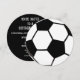 This soccer football sports themed round party invitation features an black and white soccer ball on the front . The back of the invitation has template areas for you to customise with your party information.