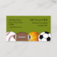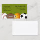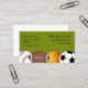 Sports themed business card with baseball, football, basketball and soccer ball on green background. Great choice for coaches or any sporting goods related businesses or organisations.Graphics©http://www.delightful-doodles.com/