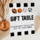 This is a sports themed Gift table sign. It includes a football, baseball, basketball, and soccer.