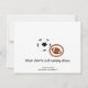 A cool sports themed birthday party invitation. A blue and white soccer ball and a brown leather football accent this fun invite. Customise with all your own information as desired.