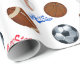 A fun wrapping paper with a sports theme, features baseball, football, basketball and soccer with All Star text on white background.