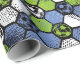 This gift-wrapping paper is shown in a sports soccer ball print.