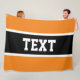Sporty Athletic Orange Black White Stripes Text Fleece Blanket