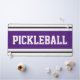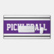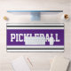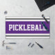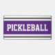 This fun sporty design features athletic PICKLEBALL text inside bold purple, black and white racing stripes.