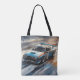 Sporty Blue Racing Car Tote Bag