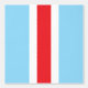 This festive design features sporty vertical bright red, baby blue, and white racing stripes.