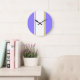 Sporty Chic Lavender White Vertical Racing Stripes Large Clock