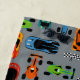 Sporty Colourful Racing Cars Kids Personalised Pattern. Top view of sporty cars, and racing flags.