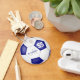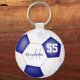 This personalised girls' soccer keychain features a classic soccer ball with dark blue and white panels - customise the player's name, monogram and jersey number - by katz_d_zynes