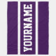 This sporty bold design features athletic white text, ready to personalize, inside bold white accent stripes against a background of deep purple.