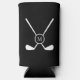 This bold golf illustration features crossed golf clubs with a central circular monogram, creating a sleek and sporty design with a modern edge on this can cooler. The minimalist layout and high-contrast styling make the custom initial stand out, offering a refined yet athletic look. Ideal for golf-themed accessories and personalized gifts, this design blends classic golf symbolism with contemporary monogram style.